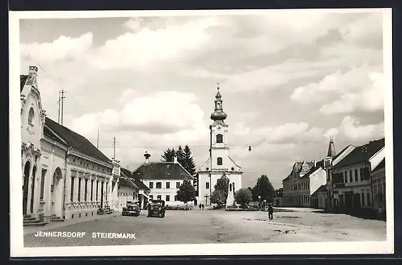 AK Jennersdorf /Steiermark, Strassenpartie mit Blick zur Kirche