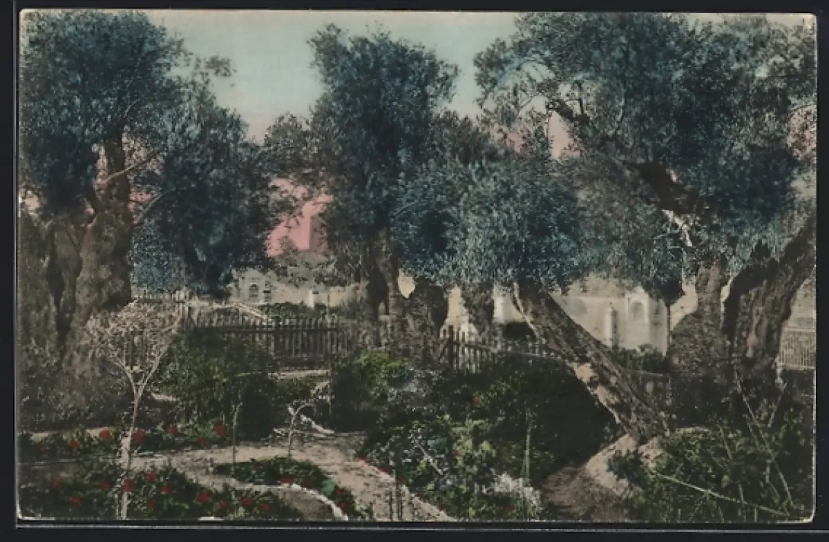 AK Jerusalem, Olivenbäume im Gethsemanegarten