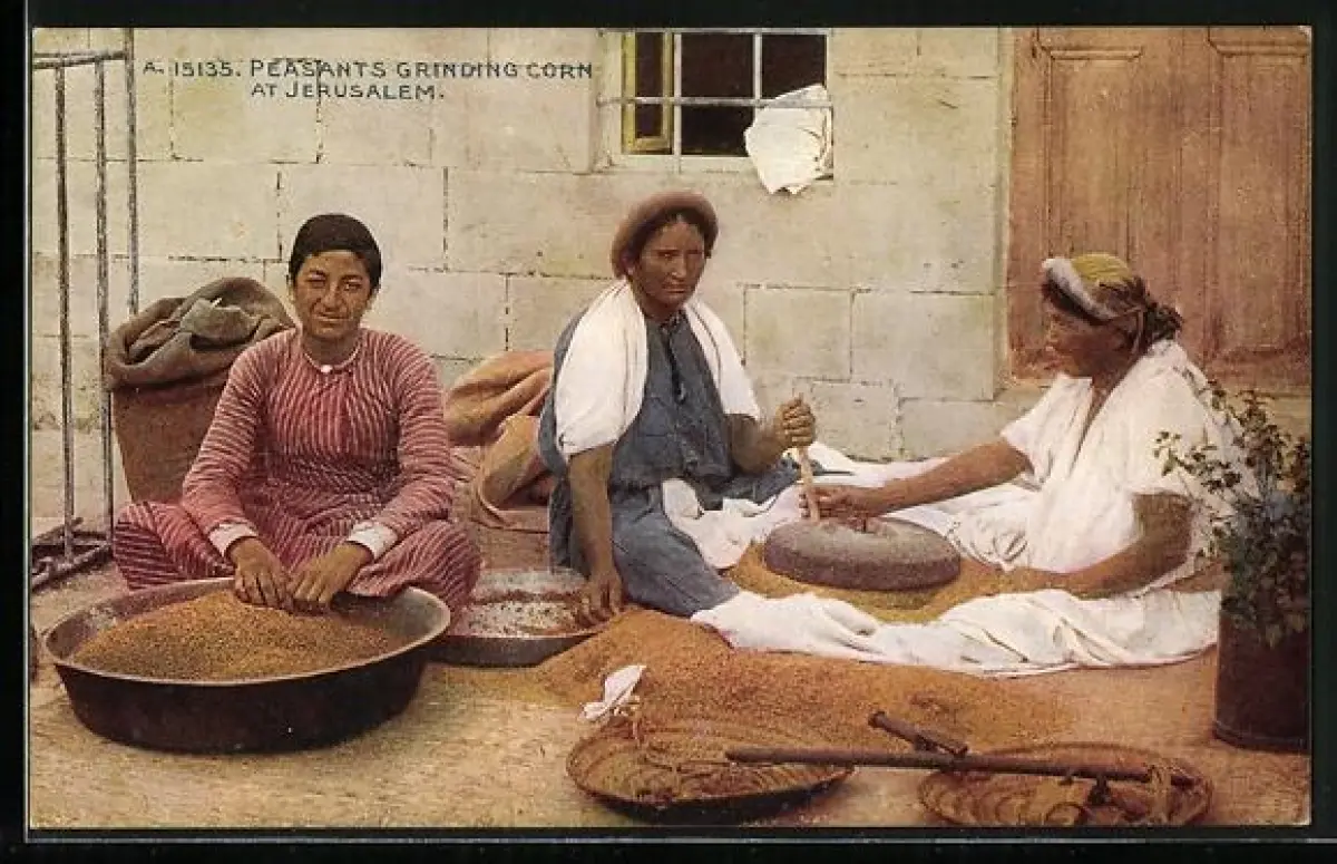 AK Jerusalem, Peasants grinding Corn, Zubereitung von Getreide