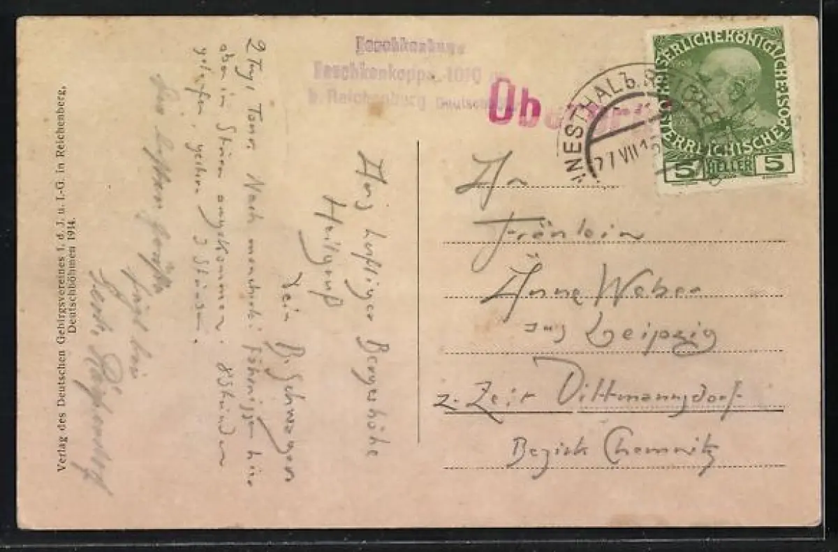alte Ansichtskarte, gelaufen 1915, Stempelspur, guter Zustand