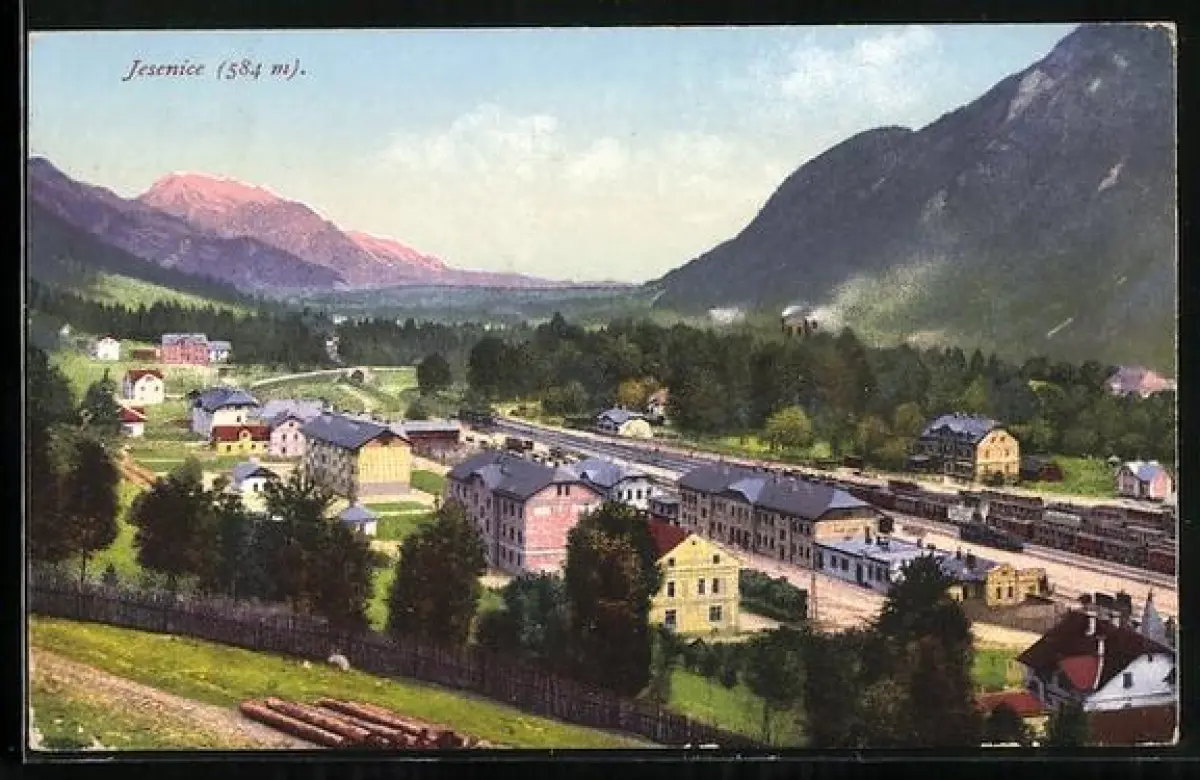AK Jesenice-Assling, Totalansicht mit Bahnhof