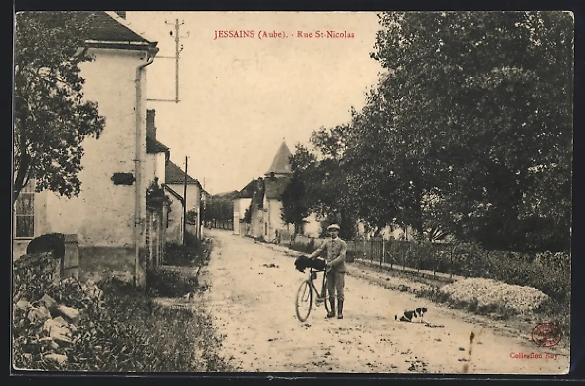 AK Jessains /Aube, Rue St-Nicolas avec un homme et son vélo