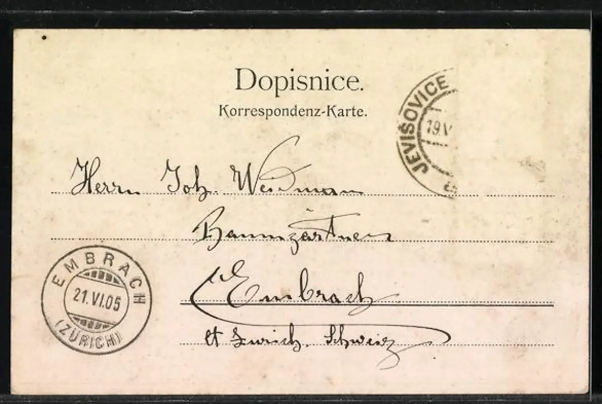 alte Ansichtskarte, gelaufen 1905, Briefmarke entfernt, rückseitig Oberflächenschaden, guter Zustand