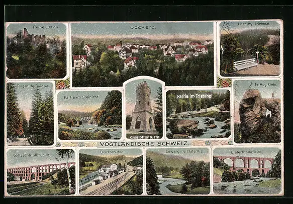 AK Jocketa, Ruine Liebau, Loreley, Charlottenthurm