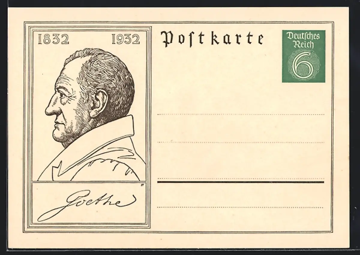 AK Johann Wolfgang von Goethe im Profil, faksimile Unterschrift, Ganzsache