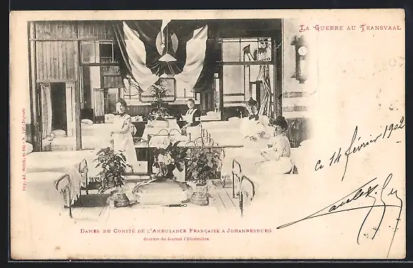 AK Johannesburg, Dames du Comité de l`Ambulance Francaise, Gravure du Journal l`Illustration, la Guerre du Transvaal