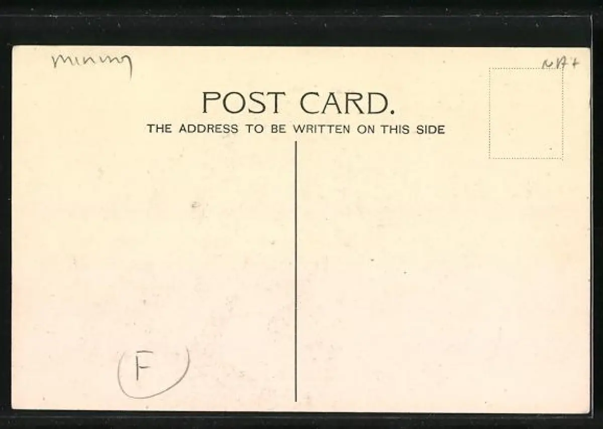 Personenbezogene Daten auf der Rückseite der Karte wurden durch blauen Textmarker unkenntlich gemacht. Die blauen Stellen sind auf die Vorderseite durchgeweicht und wirken sich negativ auf das Postkartenfoto aus