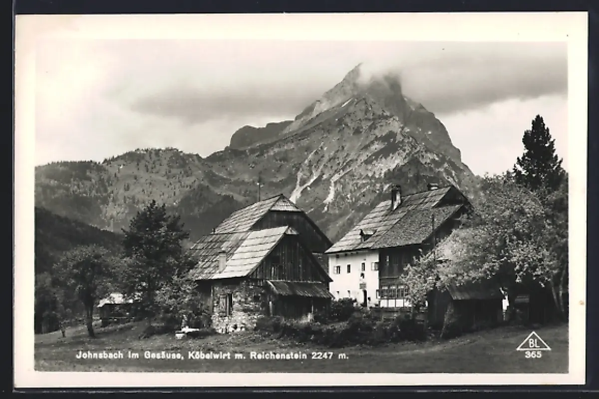 AK Johnsbach im Gesäuse, Gasthaus Köbelwirt mit Reichenstein
