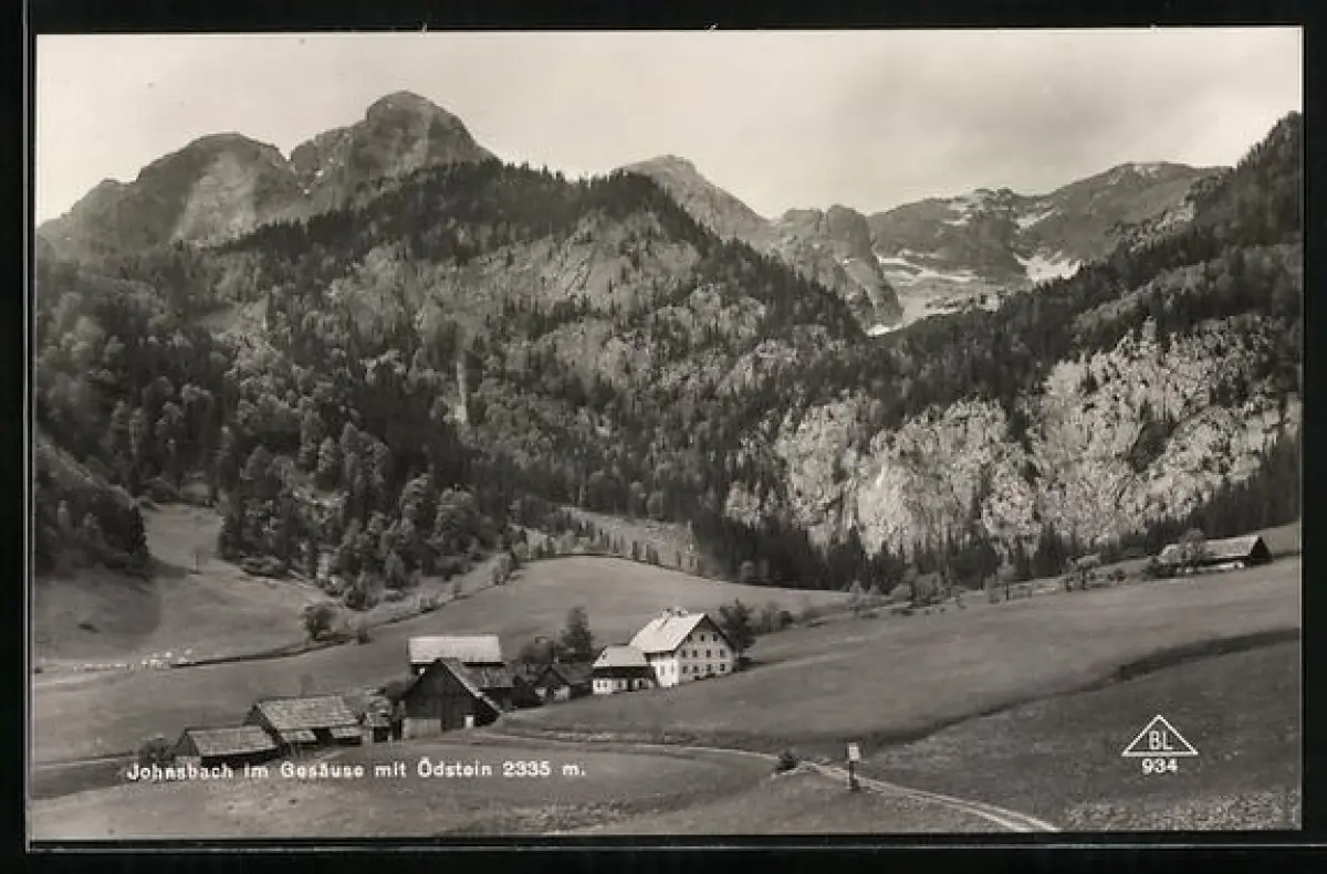 AK Johnsbach im Gesäuse, Ortsansicht mit Ödstein