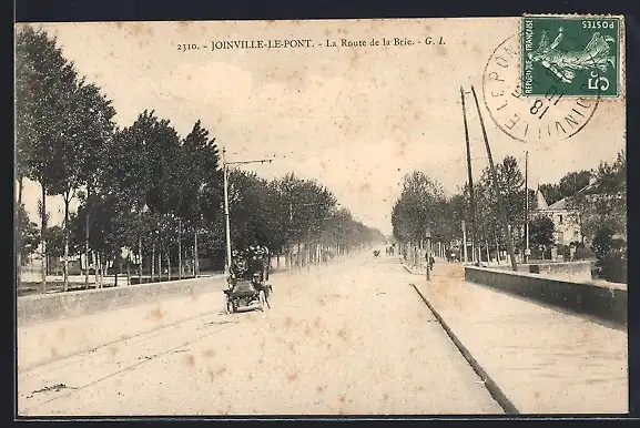 AK Joinville-le-Pont, La Route de la Brie avec calèche et arbres alignés