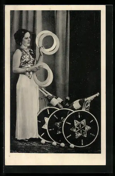 AK Jongleurin mit Ringen und Keulen, Varieté, Zirkus
