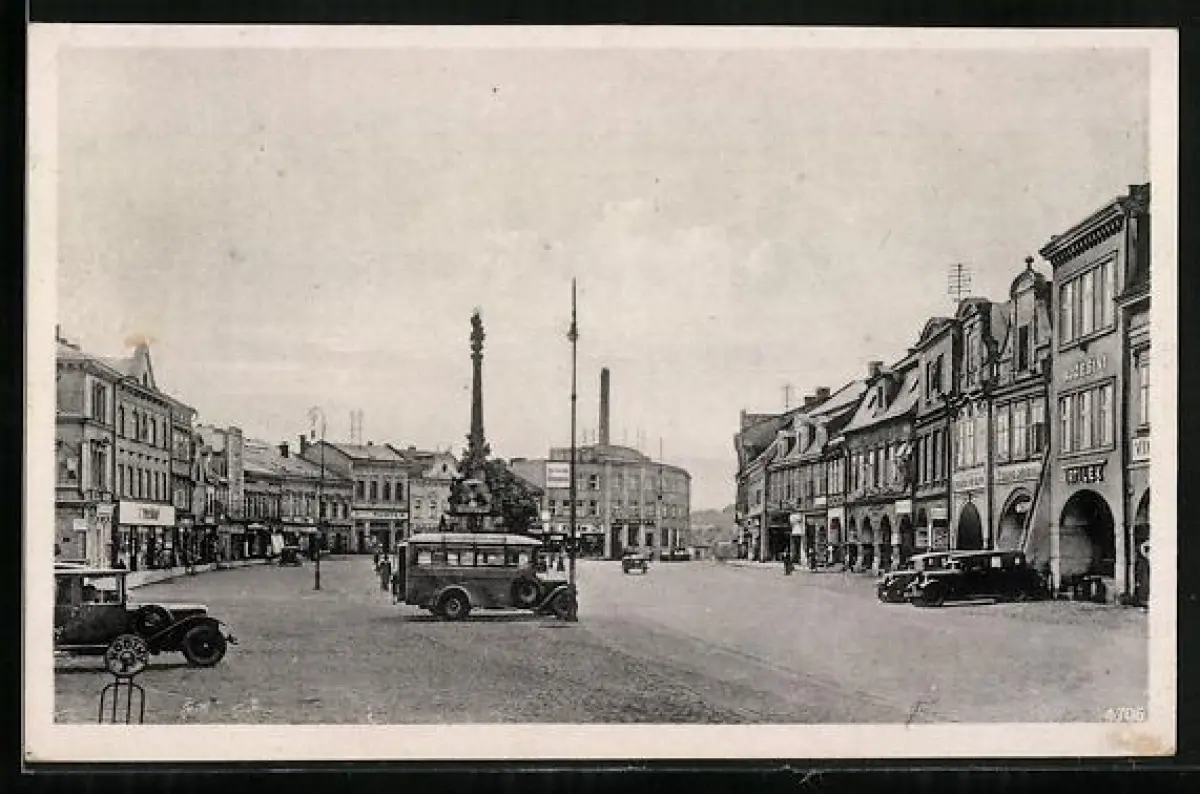 AK Josefstadt-Josefov-Jaromer, Platz im Ort mit Geschäften