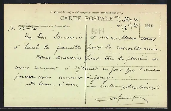 Personenbezogene Daten auf der Rückseite der Karte wurden durch blauen Textmarker unkenntlich gemacht. Die blauen Stellen sind auf die Vorderseite durchgeweicht und wirken sich negativ auf das Postkartenfoto aus