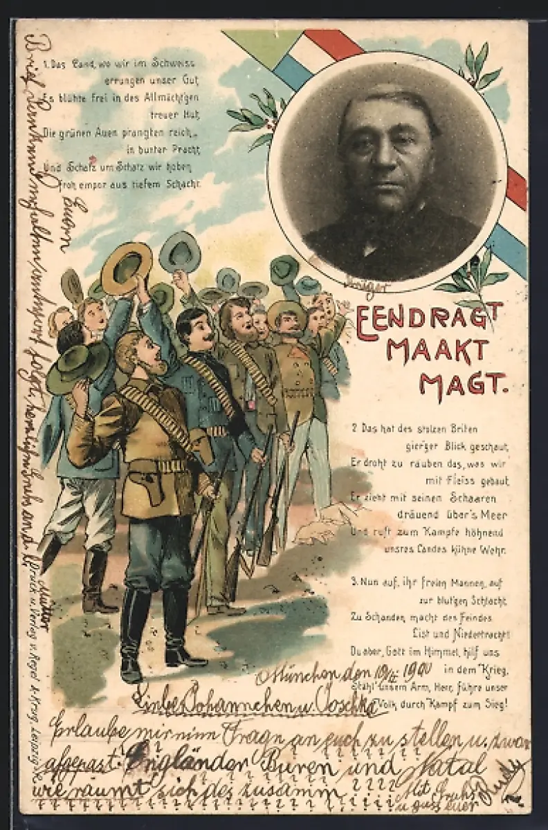 AK Jubelnde Burenkrieger und Porträt von Paul Krüger