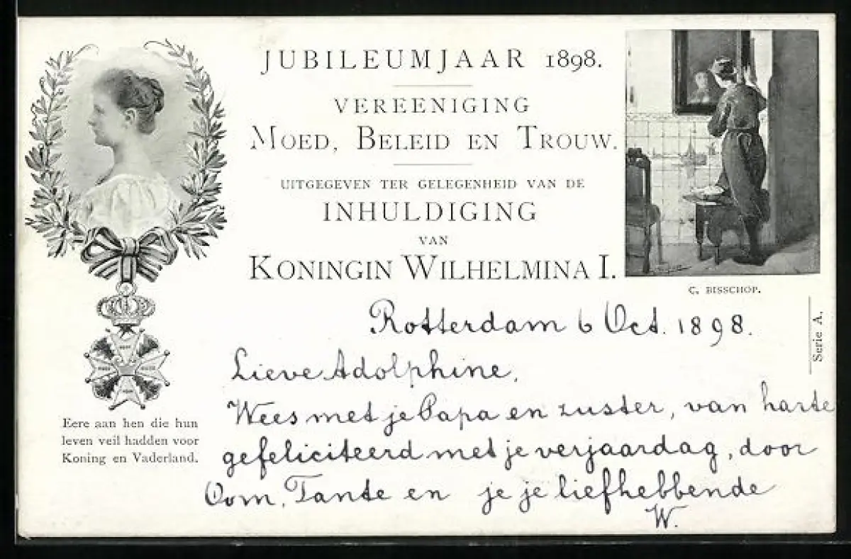 AK Jubileumjaar 1898, Vereeniging Moed, Beleid en Trouw, Koningin Wilhelmina I.