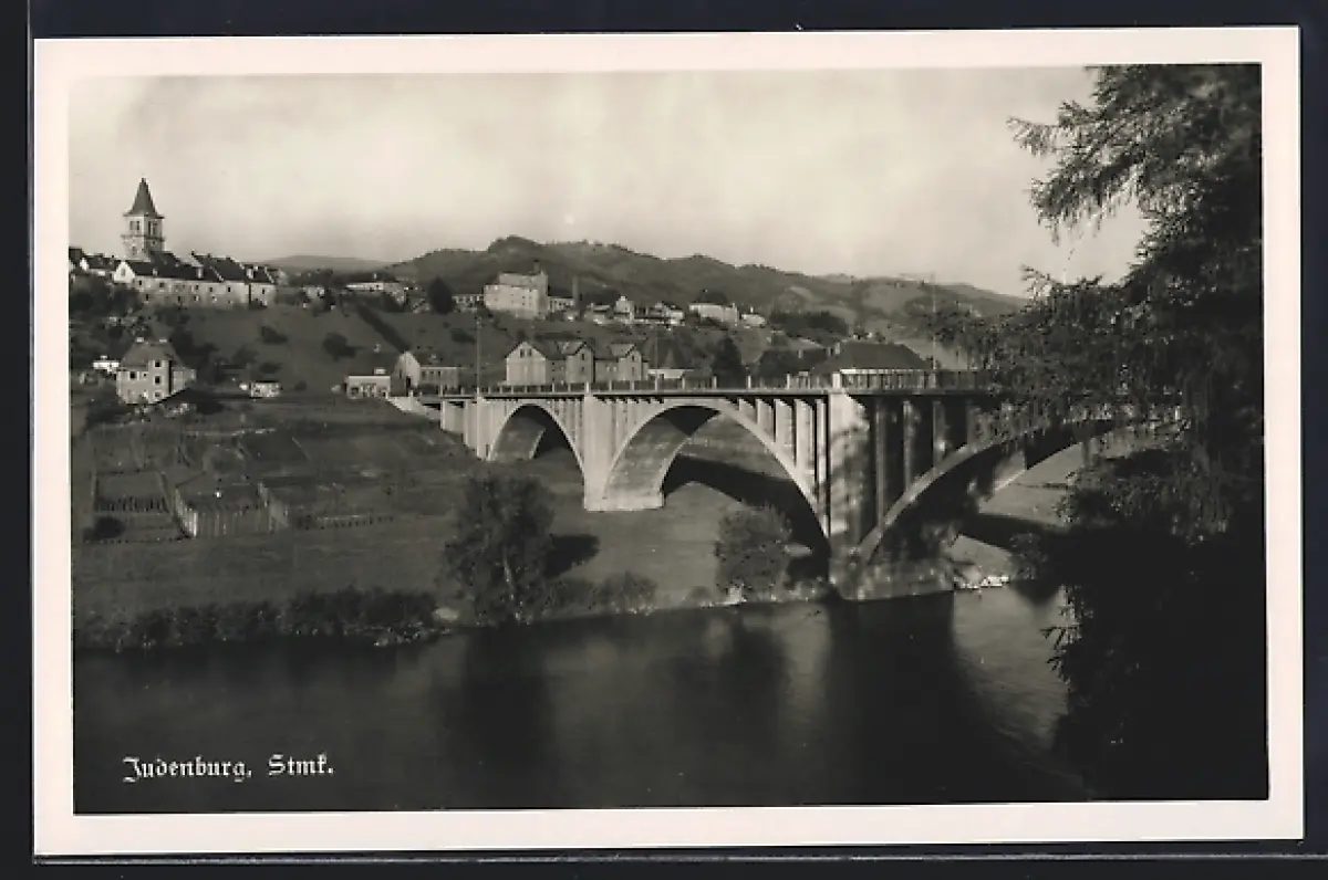 AK Judenburg, Teilansicht mit Brücke und Fluss
