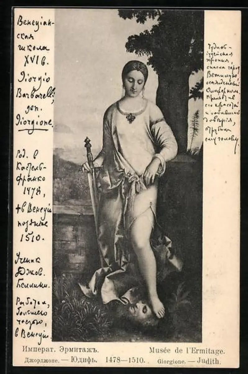 AK Judith mit dem Haupt des Holofernes von Giorgione, Rotes Kreuz