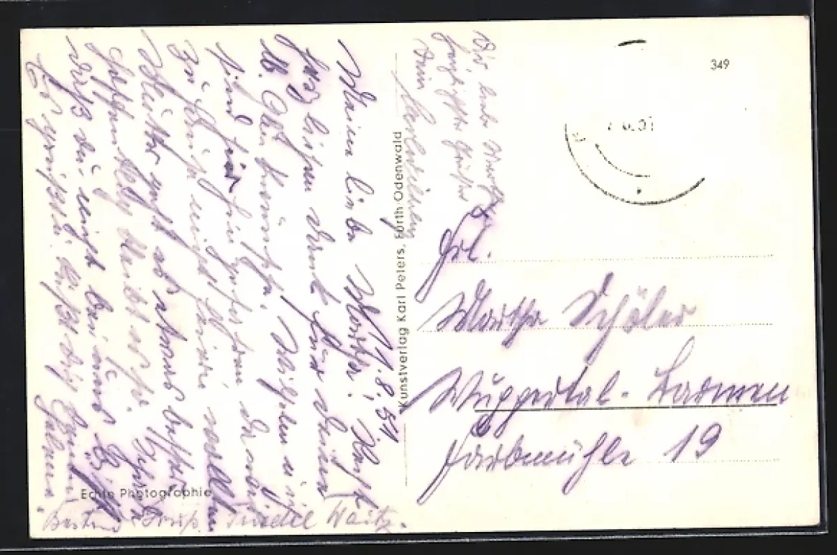 alte Ansichtskarte, gelaufen, Briefmarke entfernt, guter Zustand