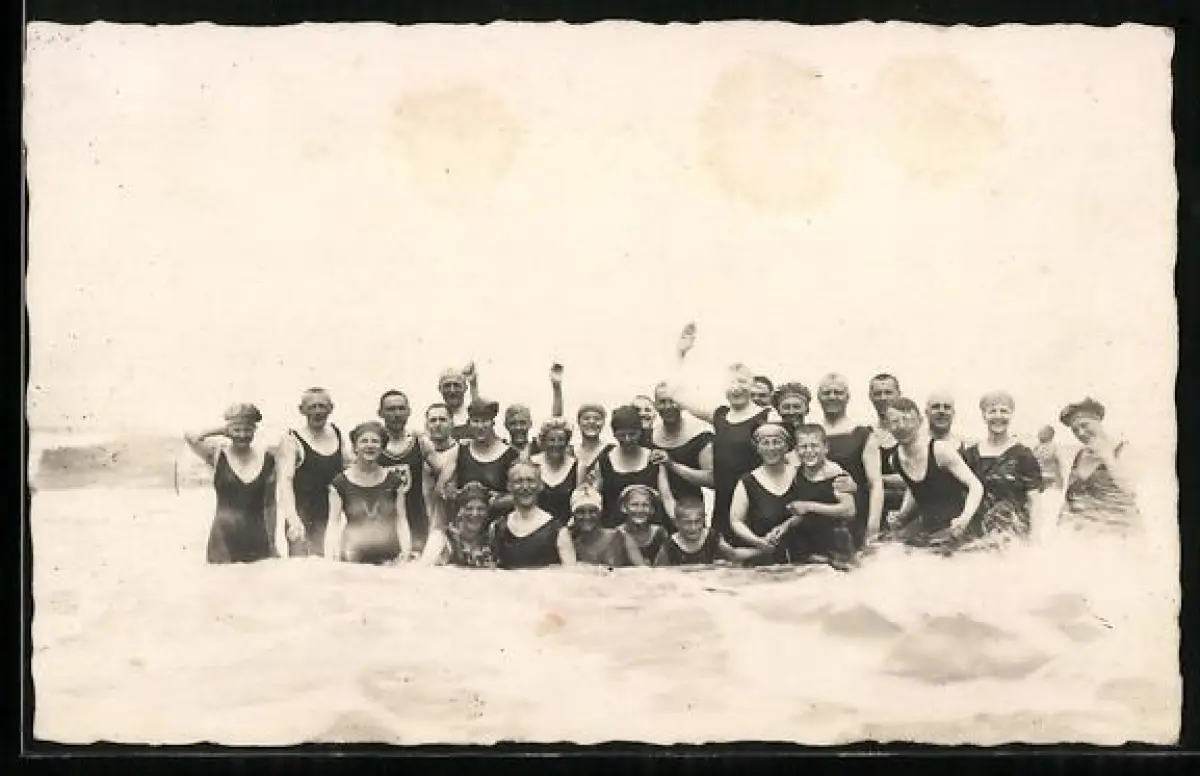 AK Juist, Männer, Frauen und Kinder in Badeanzügen in der Nordsee