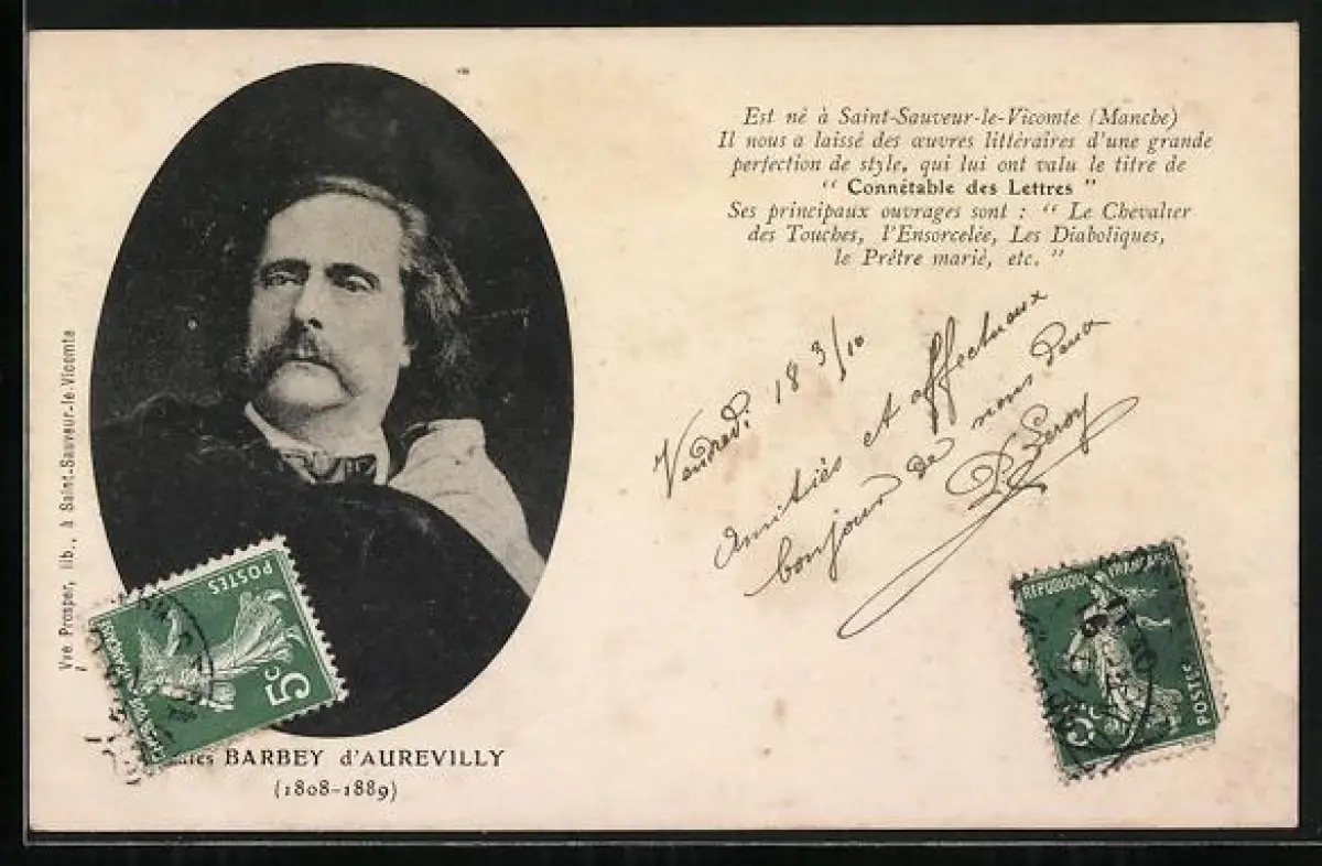 AK Jules Barbey d’Aurevilly im Portrait mit einer Huldigung