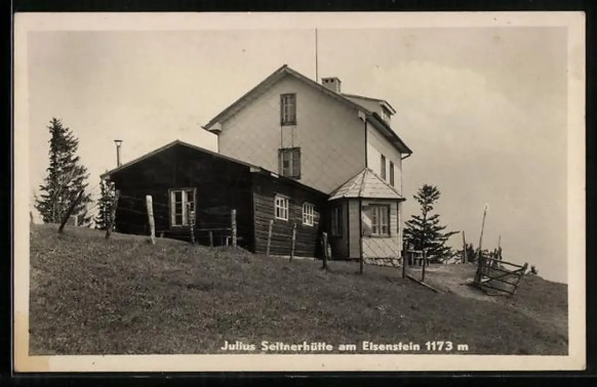 AK Julius Seitnerhütte am Eisenstein, Blick auf die Berghütte