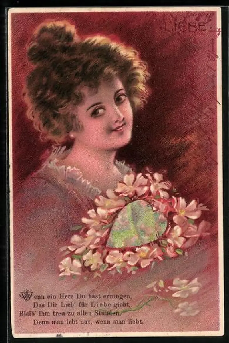 AK Junge Dame mit Herz aus Blumen, Allegorie Liebe