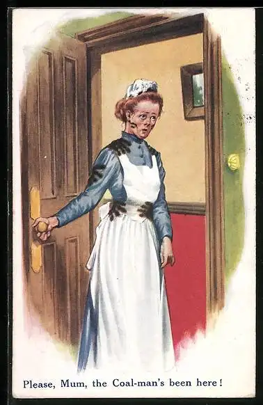 AK Junge Dame trägt unübersehbare Spuren des Kohlenmanns am Körper