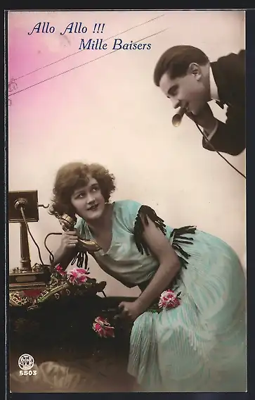 AK Junge Frau am Telefon mit ihrem Liebsten