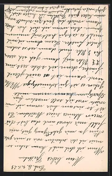 Personenbezogene Daten auf der Rückseite der Karte wurden durch blauen Textmarker unkenntlich gemacht. Die blauen Stellen sind auf die Vorderseite durchgeweicht und wirken sich negativ auf das Postkartenfoto aus
