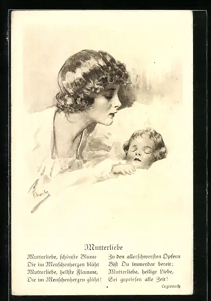 AK Junge Frau bei ihrem Kind am Bett, Mutterglück