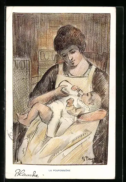 AK Junge Frau gibt ihrem Kind die Flasche, Mutterglück