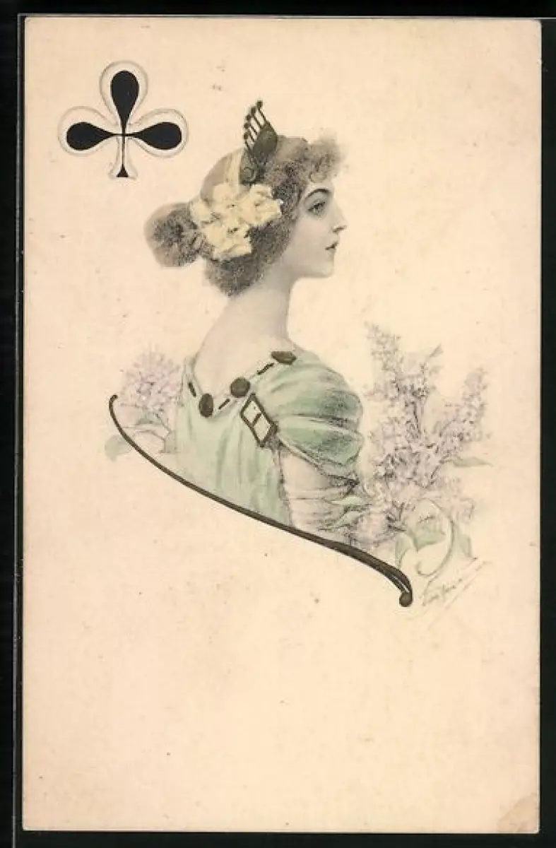 AK Junge Frau im Kleid in Seitenansicht, Kreuz Farbe