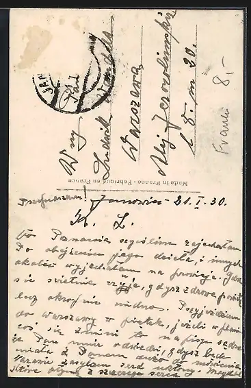gelaufen 1930, Briefmarke entfernt, rückseitig Oberflächenschaden, Stempelspur, guter Zustand