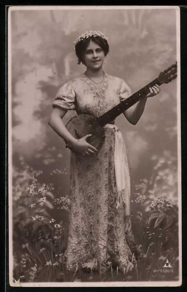 AK Junge Frau mit einem Banjo