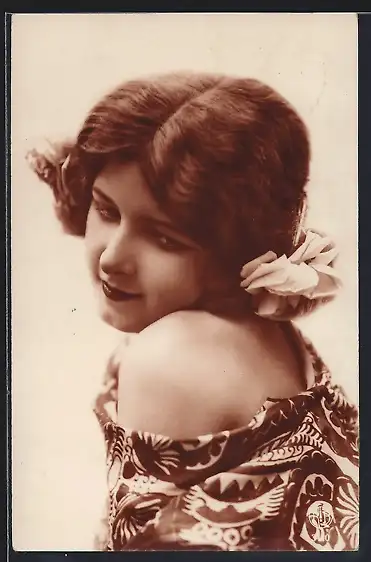 AK Junge Frau mit einer Rose im Haar