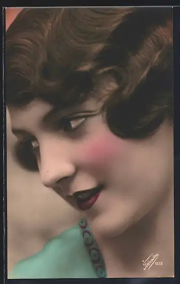 AK Junge Frau mit gewelltem Haar