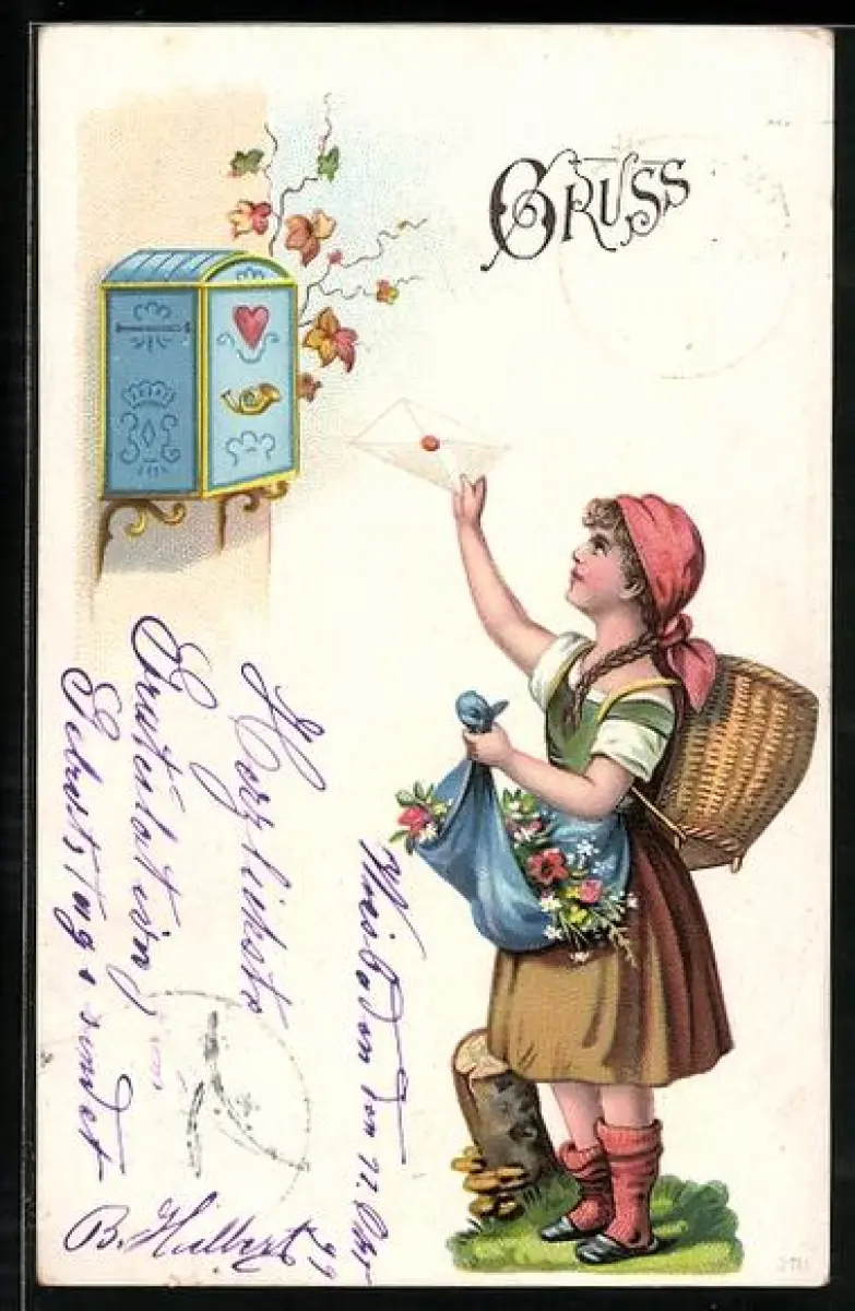 AK Junge Frau wirft einen Brief ein