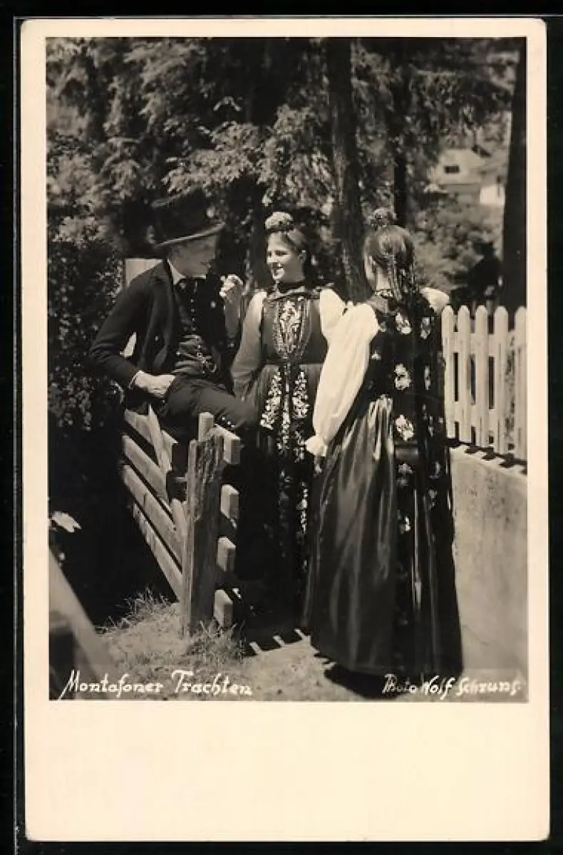 AK Junge Männer und Frauen tragen Montafoner Trachten