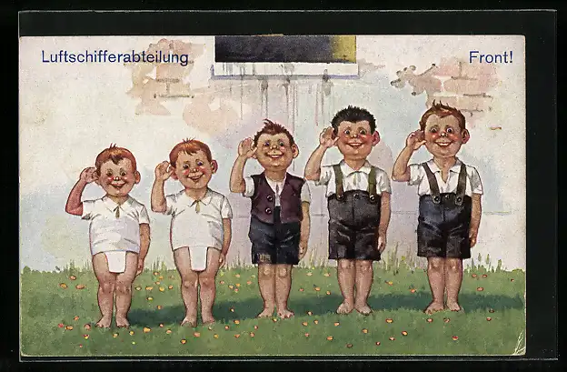 AK Junge Mitglieder einer Luftschifferabteilung salutieren