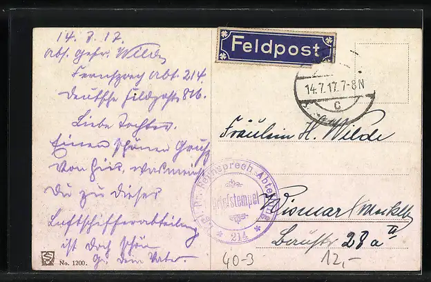alte Ansichtskarte, gelaufen 1917, guter Zustand