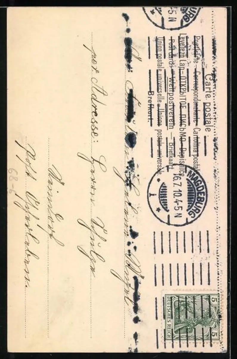 gelaufen 1910, Stempelspur, guter Zustand