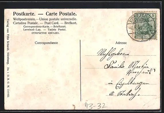 alte Ansichtskarte, gelaufen 1908, Eckknick li. unten, guter Zustand
