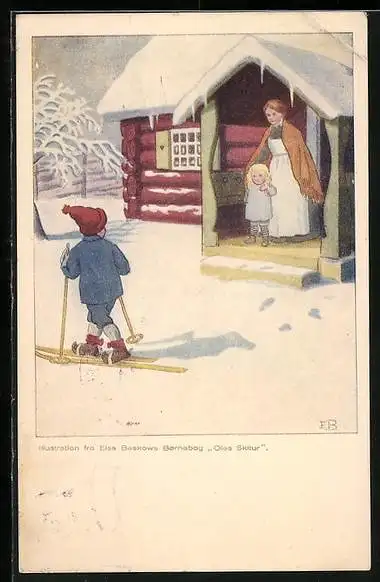 AK Junge auf Skiern schaut zu Frau mit Kind