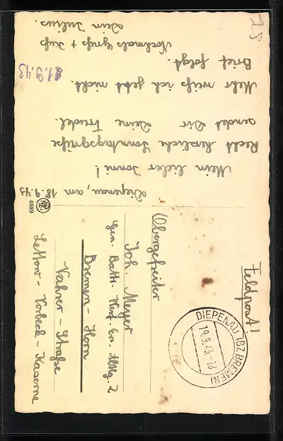 alte Ansichtskarte, gelaufen 1943, guter Zustand