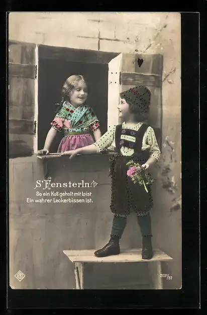 AK Junge fensterlt bei einem Mädchen, Erotik