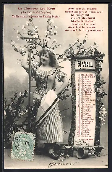 AK Junge hübsche Frau mit Kalender-Blatt April