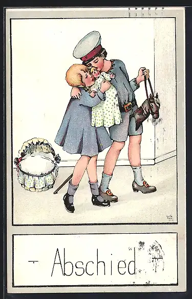 AK Junge in Uniform verabschiedet sich von seinem Mädchen