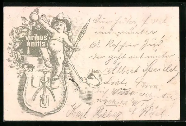AK Junge mit Bierkrug, Werkzeug, Viribus unitis