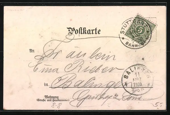 alte Ansichtskarte, gelaufen 1900, Eckknicke re. unten u. li. oben, guter Zustand