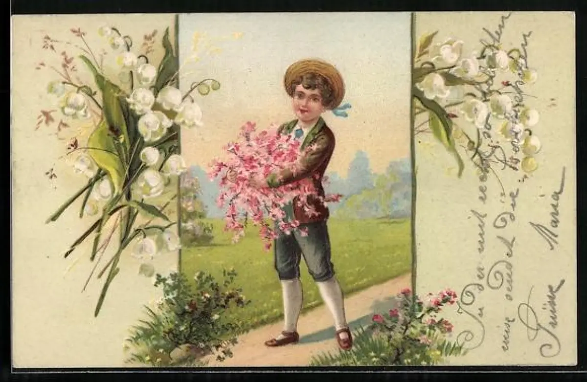 AK Junge mit Blumen zum Pfingsten